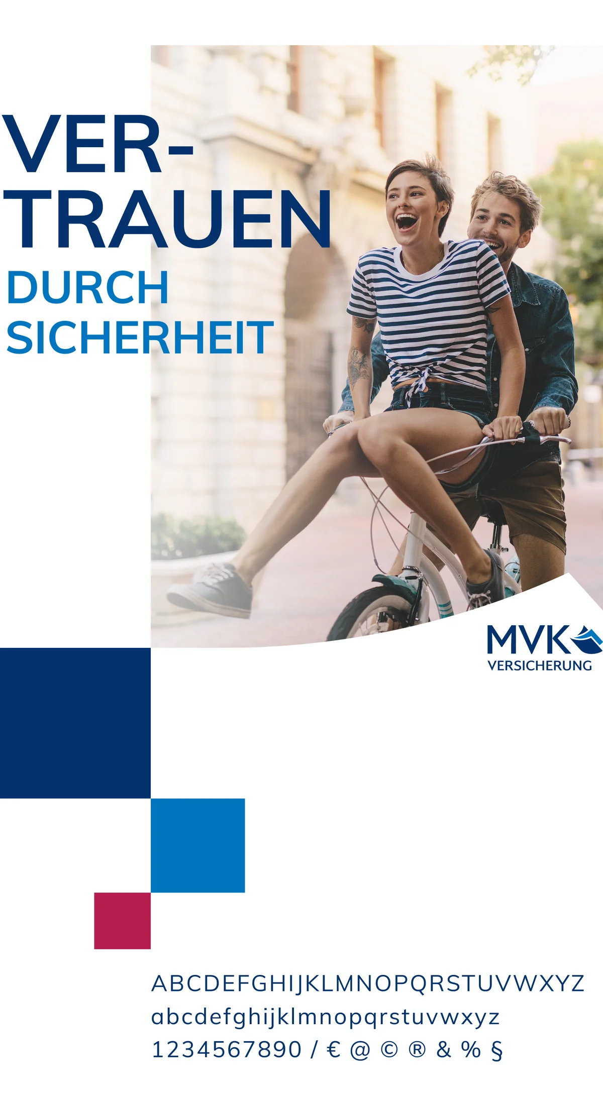 Die drei Adjektive spiegeln die Grundpfeiler der MVK Versicherung wider. Gleichzeitig ergeben sie abgekürzt die Buchstaben der Marke MVK. Drei Buchstaben, die früher die Abkürzung für die Medien-Versicherung a.G. Karlsruhe ergaben, wurden mit neuem Inhalt gefüllt – einfach, aber genial.