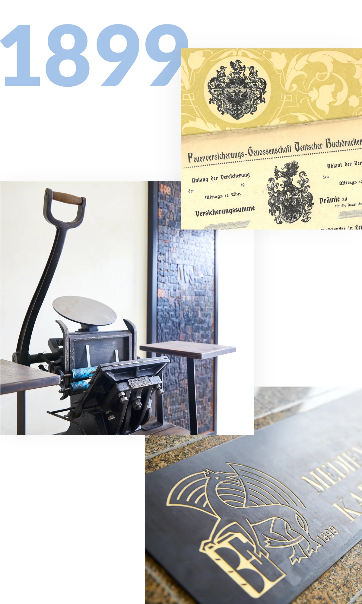 Sich als Kleingewerbe gegen Feuer zu versichern ist im 19. Jahrhundert kein Spaß. Die großen Versicherer diktieren den Markt; für kleinere Unternehmen wie Buchdruckereien führt das mitunter zu unbezahlbaren Versicherungssummen. Warum also nicht eine eigene Versicherung gründen? denkt sich das kluge Völkchen der Buchdrucker und macht sich ans Werk. So wird 1899 die Feuerversicherungs-Genossenschaft Deutscher Buchdrucker gegründet.